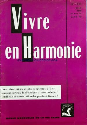 VIVRE EN HARMONIE [No 237] du 01/06/1973 - POUR VIVRE MIEUX ET PLUS LONGTEMPS - C'EST SOUVENT CURIEUX LA DIETETIQUE - ACETONEMIE - CUEILLETTE ET CONSERVATION DES PLANTES A TISANES PDF Download