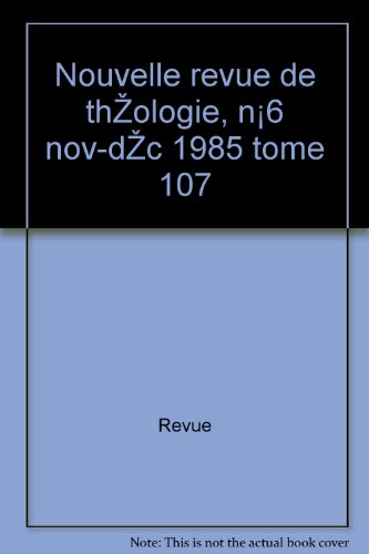 Revue - Nouvelle de théologie, n°6 nov-déc 1985 tome 107 PDF Kindle
